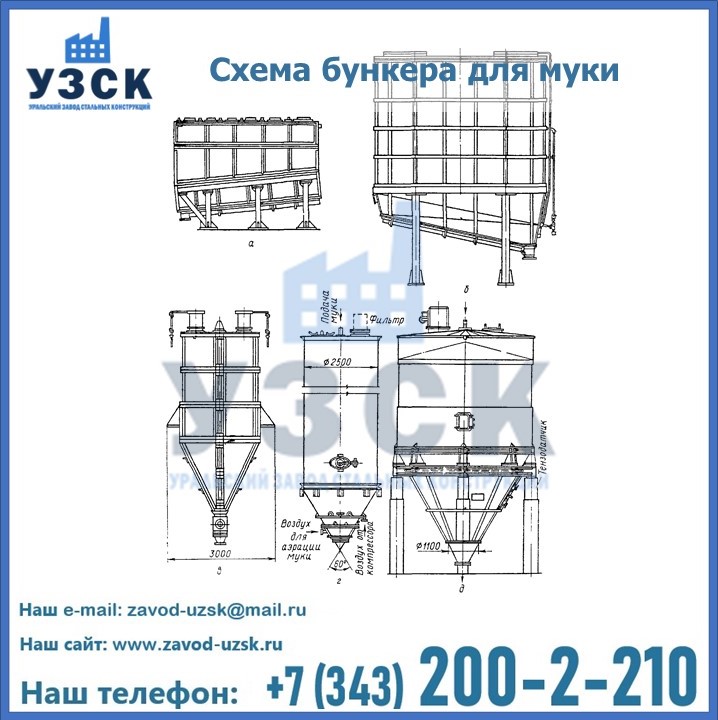 Завод «УЗСК» в Элисте проектирует, производит и поставляет целевое оборудование, в том числе, бункеры для хранения муки и прочих сыпучих материалов.