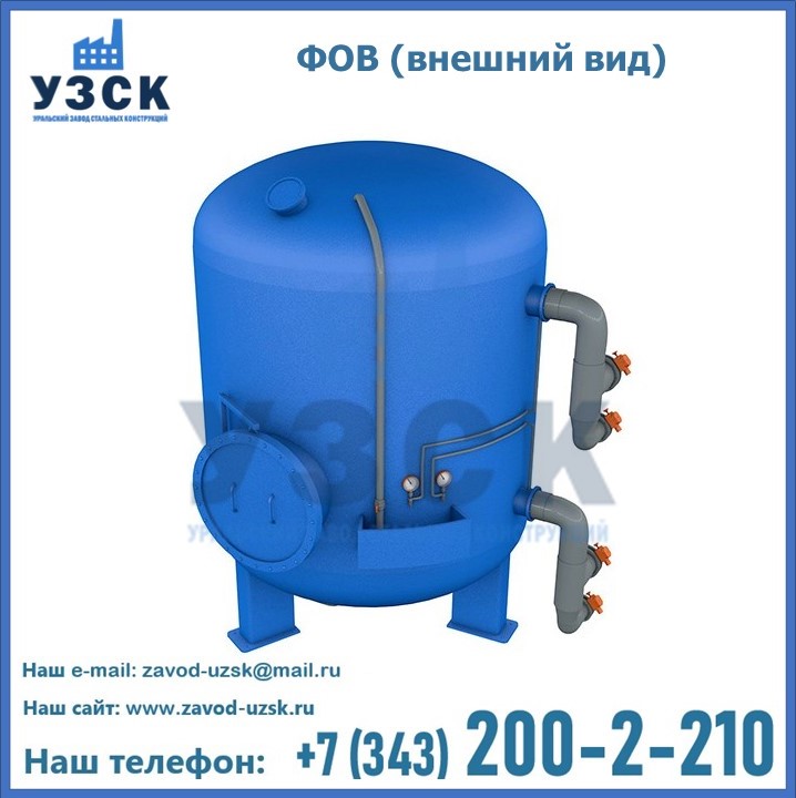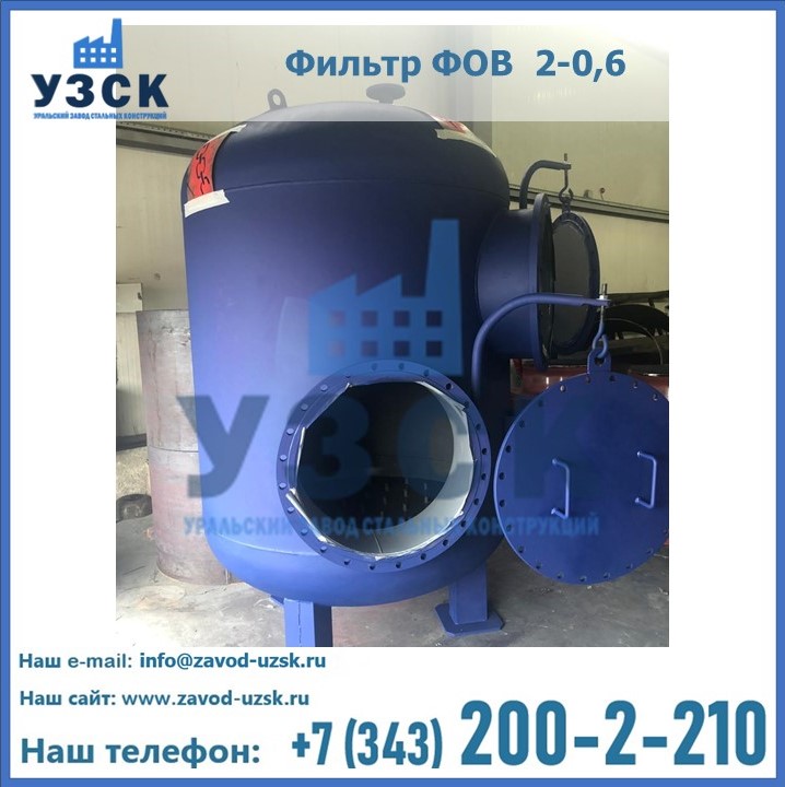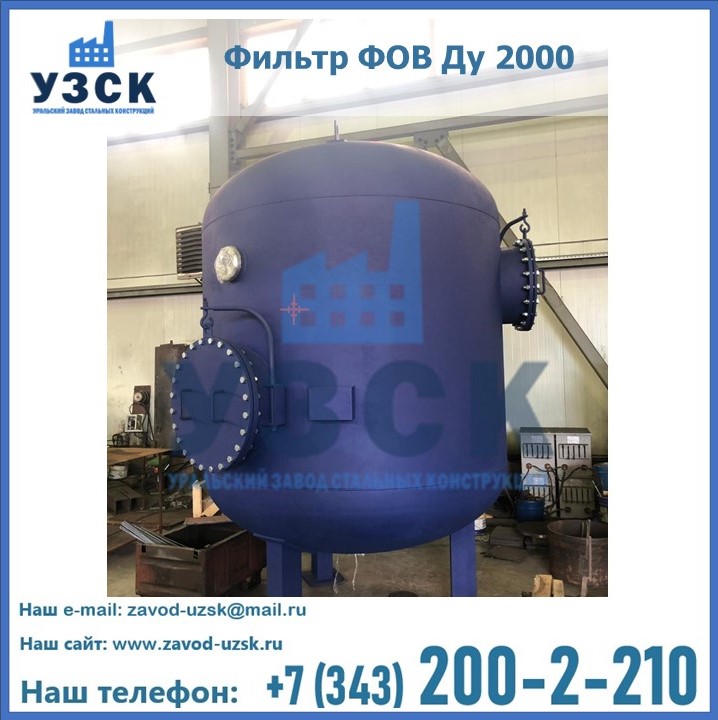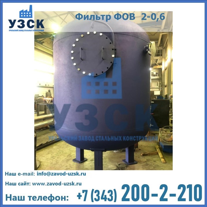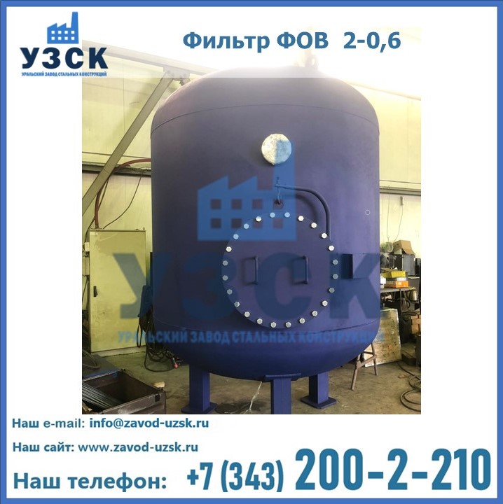 Удаление взвешенных веществ различного уровня дисперсности из рабочих жидкостей эффективно проводит фильтр осветлительный типа ФОВ (скорый или механический) — вертикально-цилиндрической формы установка, разработанная для систем водоподготовки различного класса. Оборудование представляет собой однокамерный агрегат для очистки воды рекомендованный для применения на станциях очистки стоков, в коммунальных котельных, на ТЭЦ, в промышленных отопительных системах и пр. Заказать производство ФОВ фильтров предлагает наш Уральский завод стальных конструкций в Элисте. У нас можно купить фильтрационное оборудование различного класса и типа, в том числе фильтры ФОВ из нержавеющей стали.